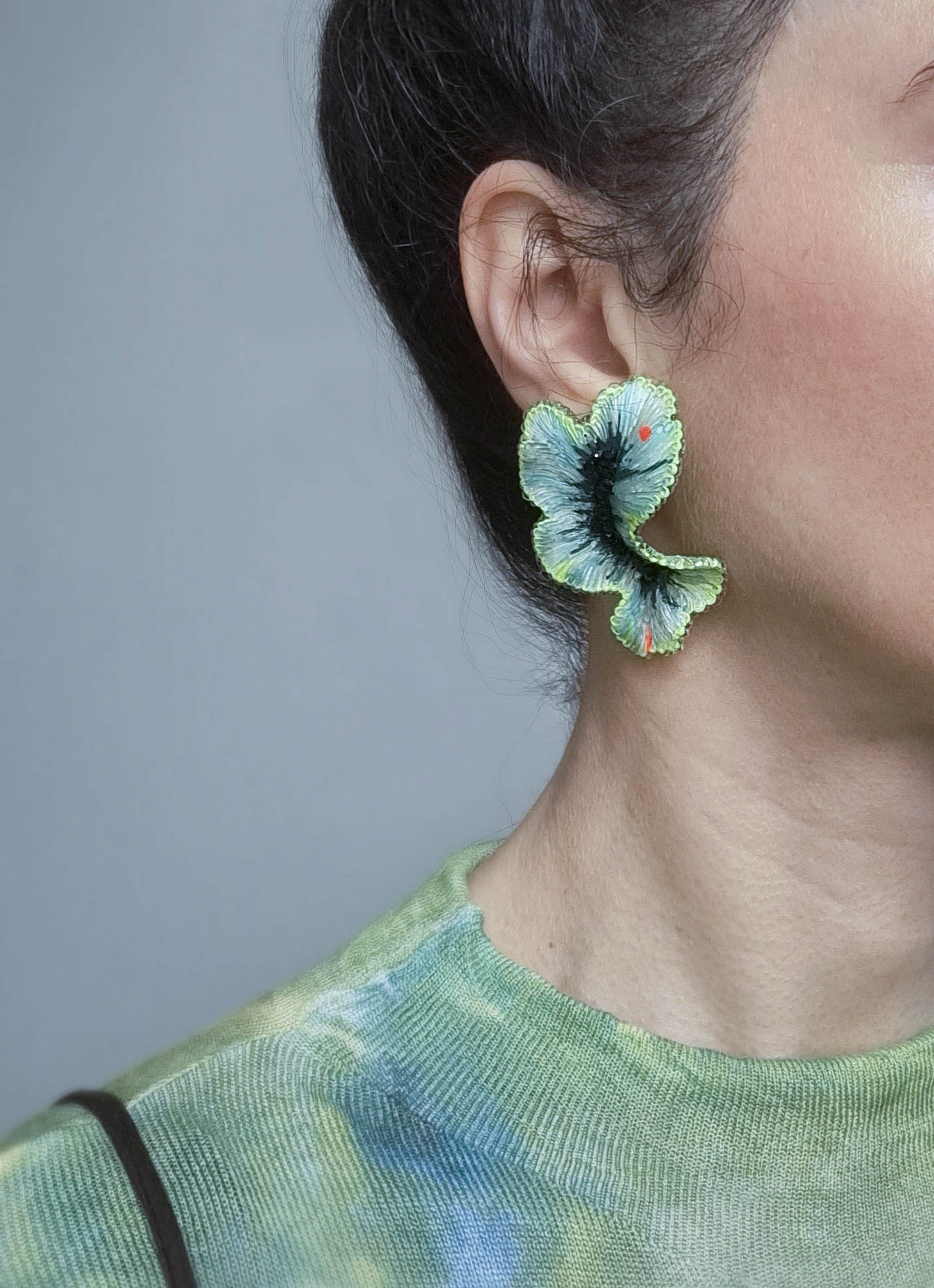 Inspired by colourful underwater mollusks, the nudibranchs, the “Nudi” earrings echo a vivid, otherworldly underwater life: flowing, luminous, and alive.
