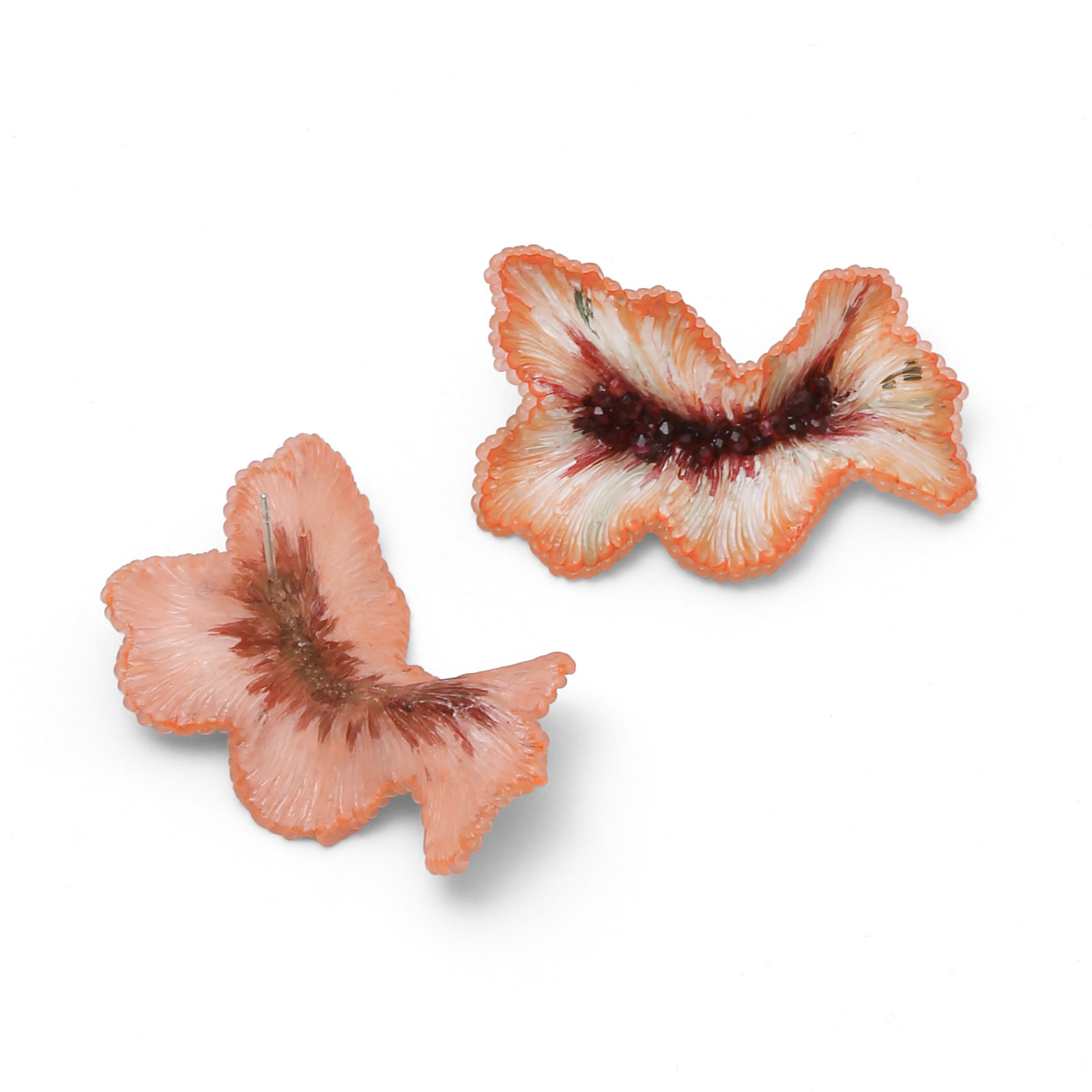 Inspired by colourful underwater mollusks, the nudibranchs, the “Nudi” earrings echo a vivid, otherworldly underwater life: flowing, luminous, and alive.